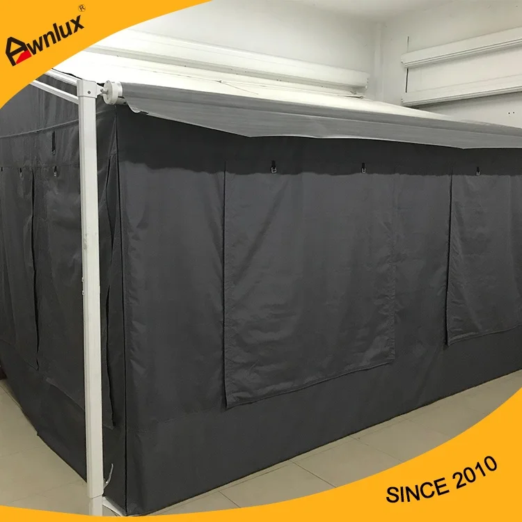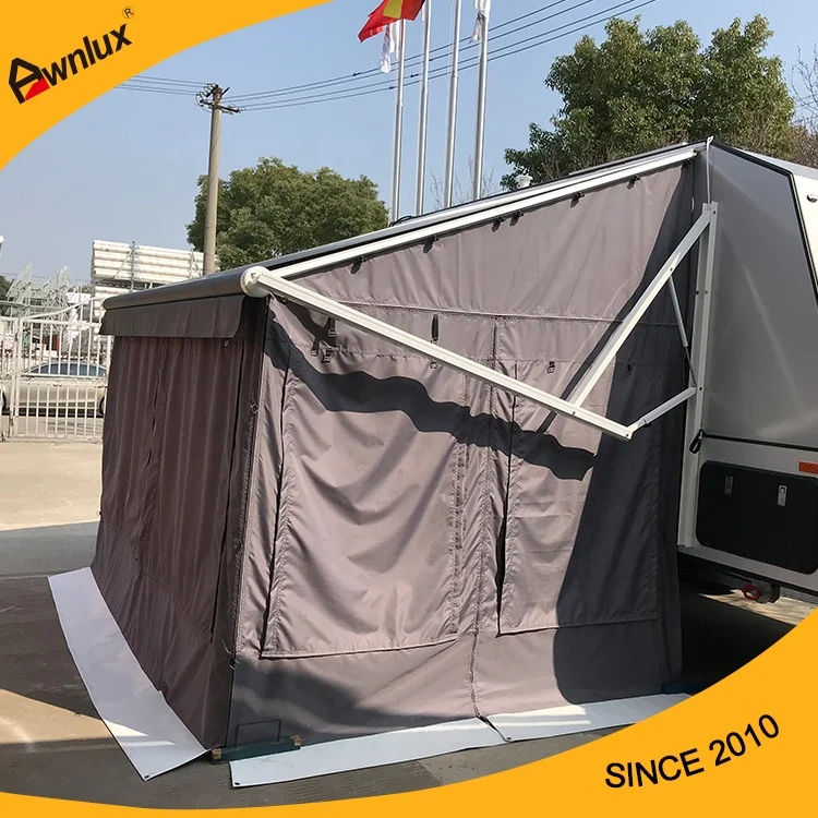 This outdoor sunshade awning is designed for motorhomes, campers, and caravans.