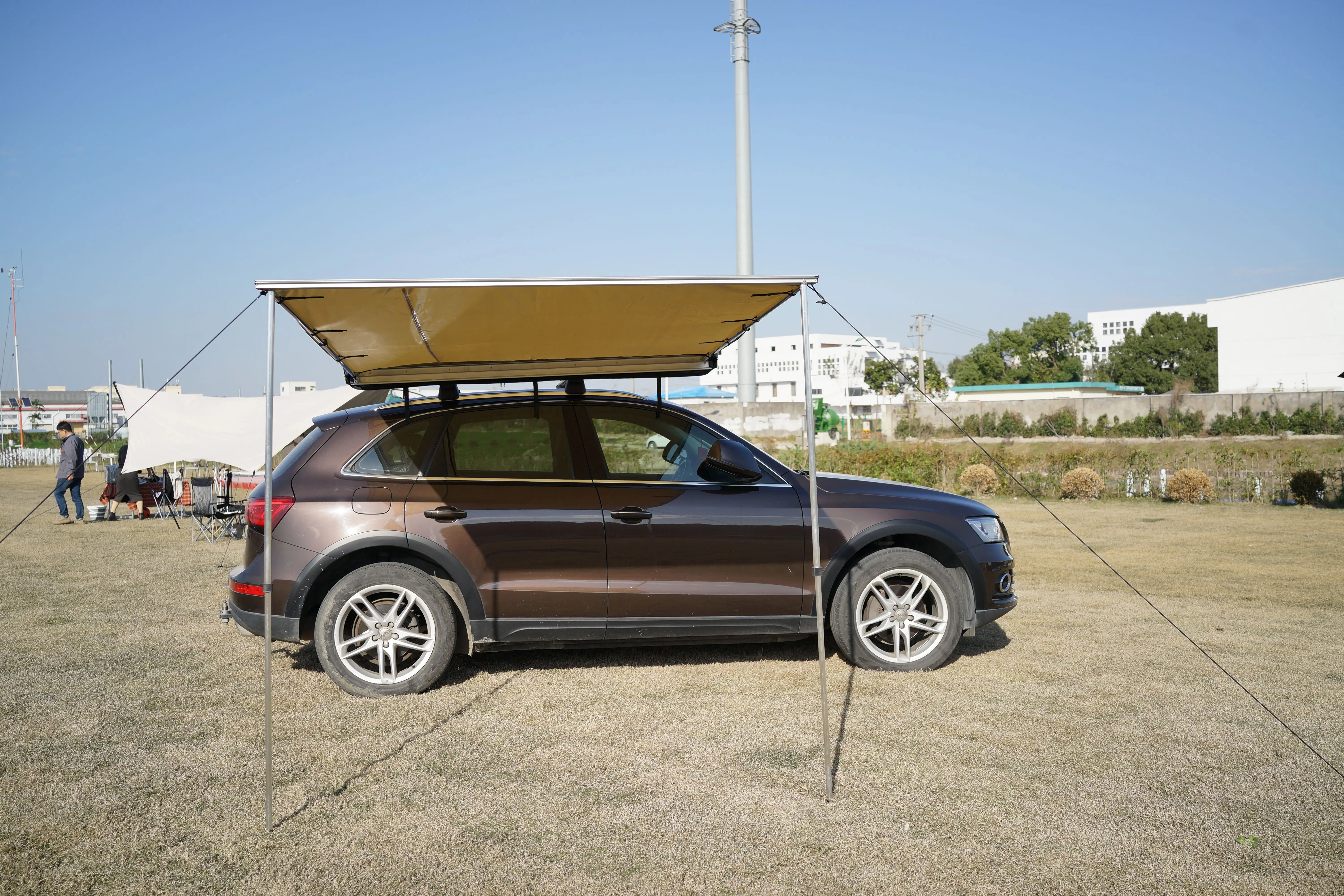 This portable waterproof car side awning provides instant shade and protection for off-road vehicles, SUVs, and 4WDs.