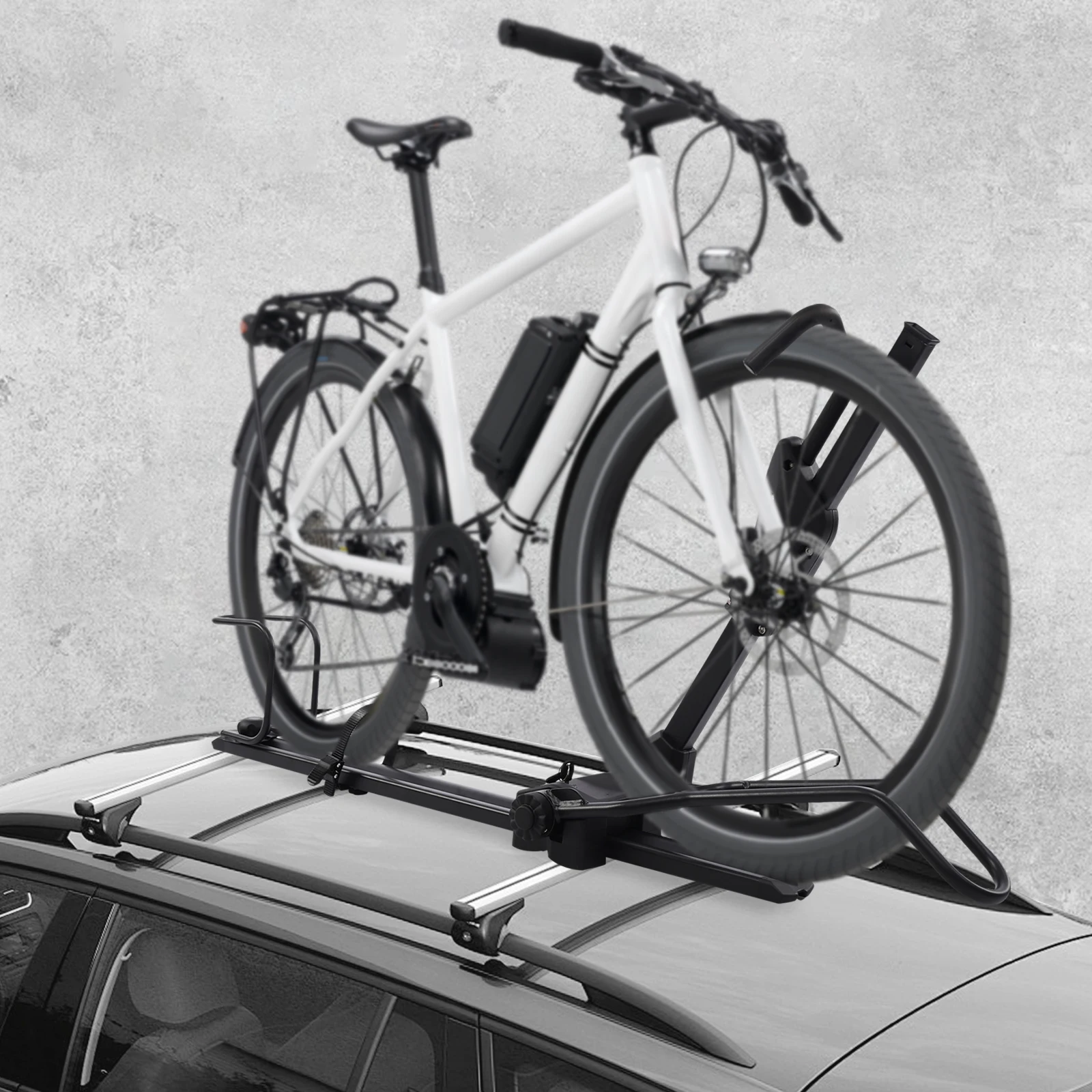 This adjustable roof bike rack provides a secure and stable solution for carrying one bicycle on your car or SUV.