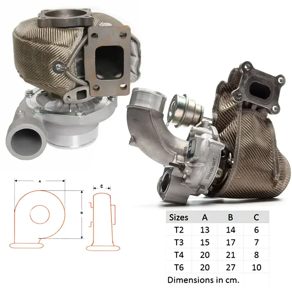 Protect your turbo system and improve engine bay performance with this Glasvezel Turbo Hitteschild (Fiberglass Turbo Blanket). Designed for T2, T25, T28, T3, T4, and T6 turbocharger sizes, this high-temperature heat shield cover reduces radiant heat from the turbine housing, helping your engine run cooler, safer, and more efficiently.
