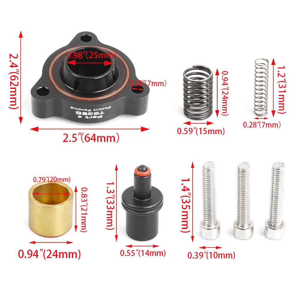 The adapter enables a sharper blow-off sound and improved throttle response, making it a popular upgrade for drivers seeking both performance and audible feedback. Built from high-quality aluminum alloy, the T9356 kit offers reliable sealing, excellent heat resistance, and long-term durability.