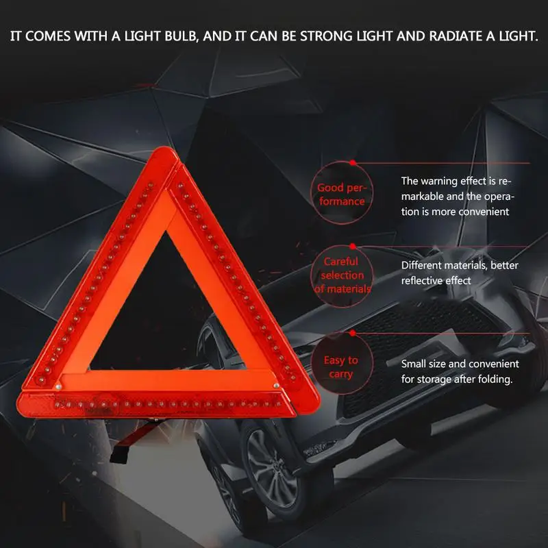 This universal auto car LED warning triangle is designed for roadside emergency safety.