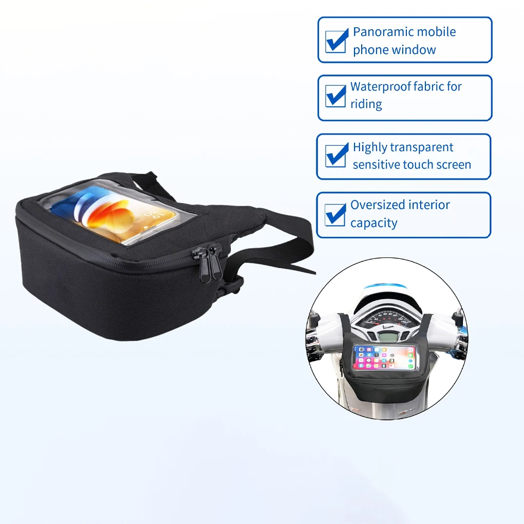 This universal motorbike handlebar bag is designed for convenient phone storage and riding essentials.