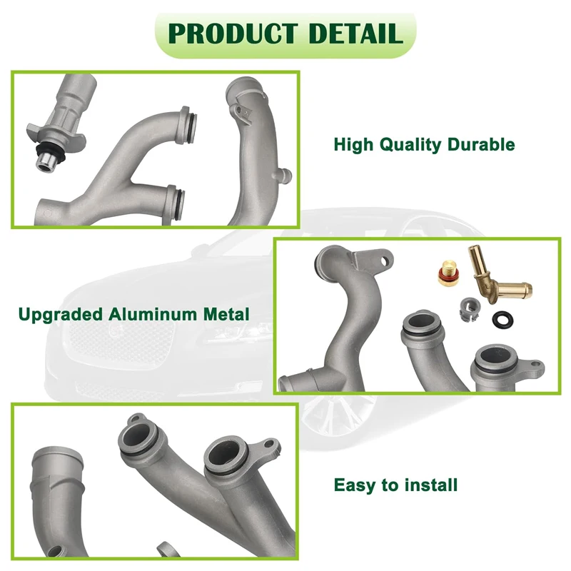 This water outlet tube hose kit is designed for Jaguar and Land Rover vehicles equipped with 3.0L V6 and 5.0L V8 engines.